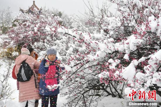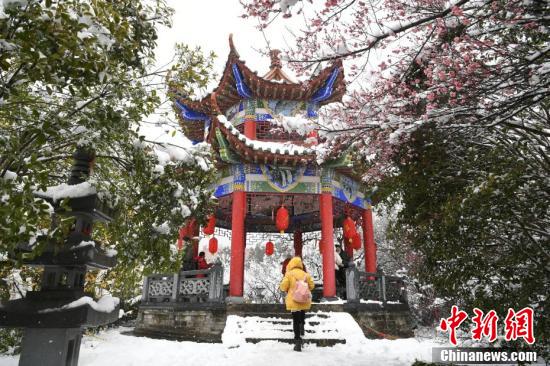 2月7日,安徽省合肥市迎来降雪天气,城市披上一层银装,白茫茫一片。在大蜀山脚下“雪打腊梅”的美景,吸引了众多市民前来欣赏拍摄。 韩苏原 摄