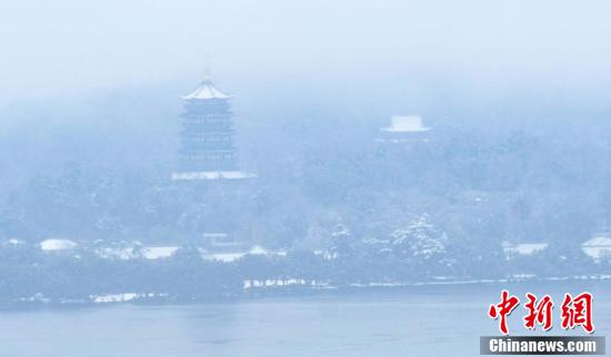 2月7日,西湖临湖建筑在大雪中隐现。当日,浙江杭州迎来降雪天气,西湖呈现“雪湖”景观,美不胜收。 中新社记者 王刚 摄