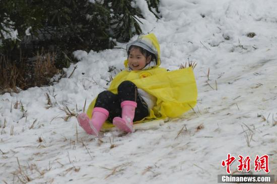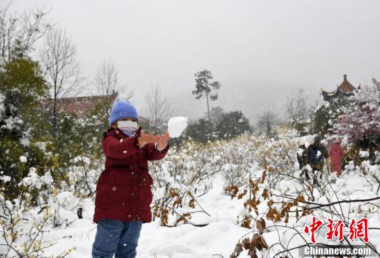 2月7日,安徽省合肥市迎来降雪天气,城市披上一层银装,白茫茫一片。在大蜀山脚下“雪打腊梅”的美景,吸引了众多市民前来欣赏拍摄。 图为小朋友在嬉雪。 韩苏原 摄