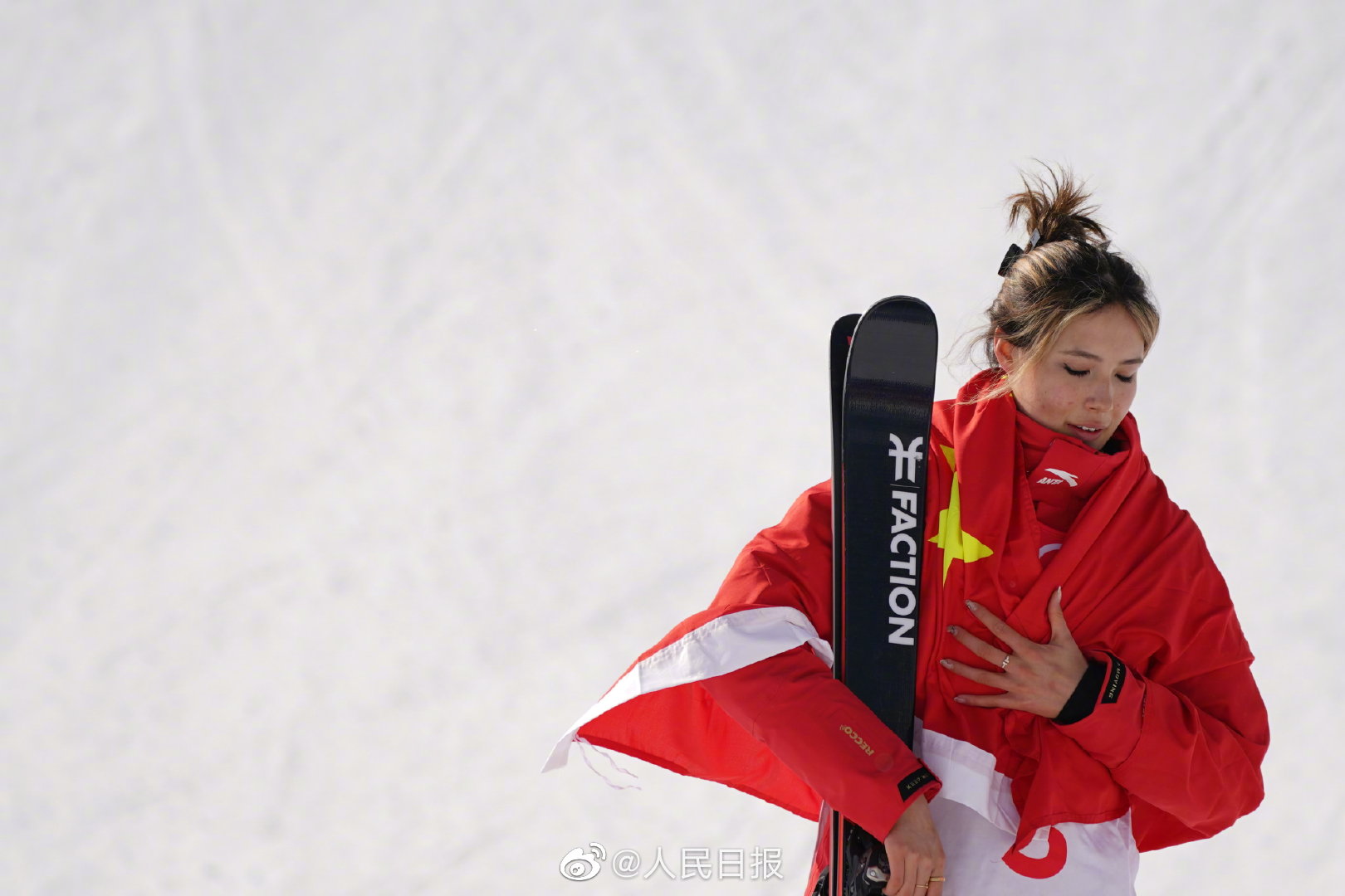 自由式滑雪女子坡面障碍技巧决赛,谷爱凌获得银牌。赛后谷爱凌把五星红旗披在身上,再次祝贺谷爱凌 !