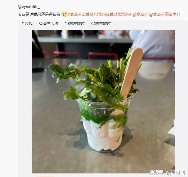 有不过瘾的香菜党甚至发布香菜新地品尝攻略——自带一把香菜。直接把带梗的香菜插进冰淇淋中,让香菜和冰淇淋一同在口中炸开。