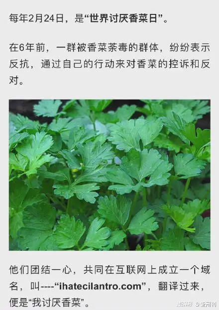 2月24日,一个平凡的寒冷春日,对一群人来说却是个重要的日子,因为这天,是“世界讨厌香菜日”。