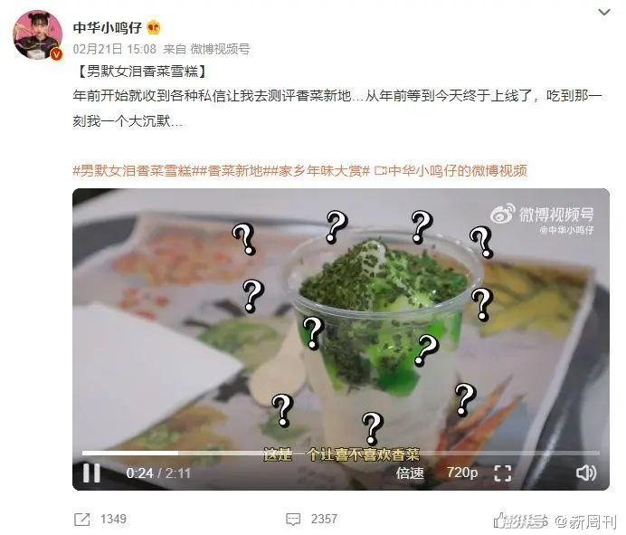 知名美食博主“中华小名仔”称从年前就开始收到私信测评香菜新地,并发布测评视频,表示“吃到那一刻我一个大沉默”,这条视频目前已经有2000多条评论。