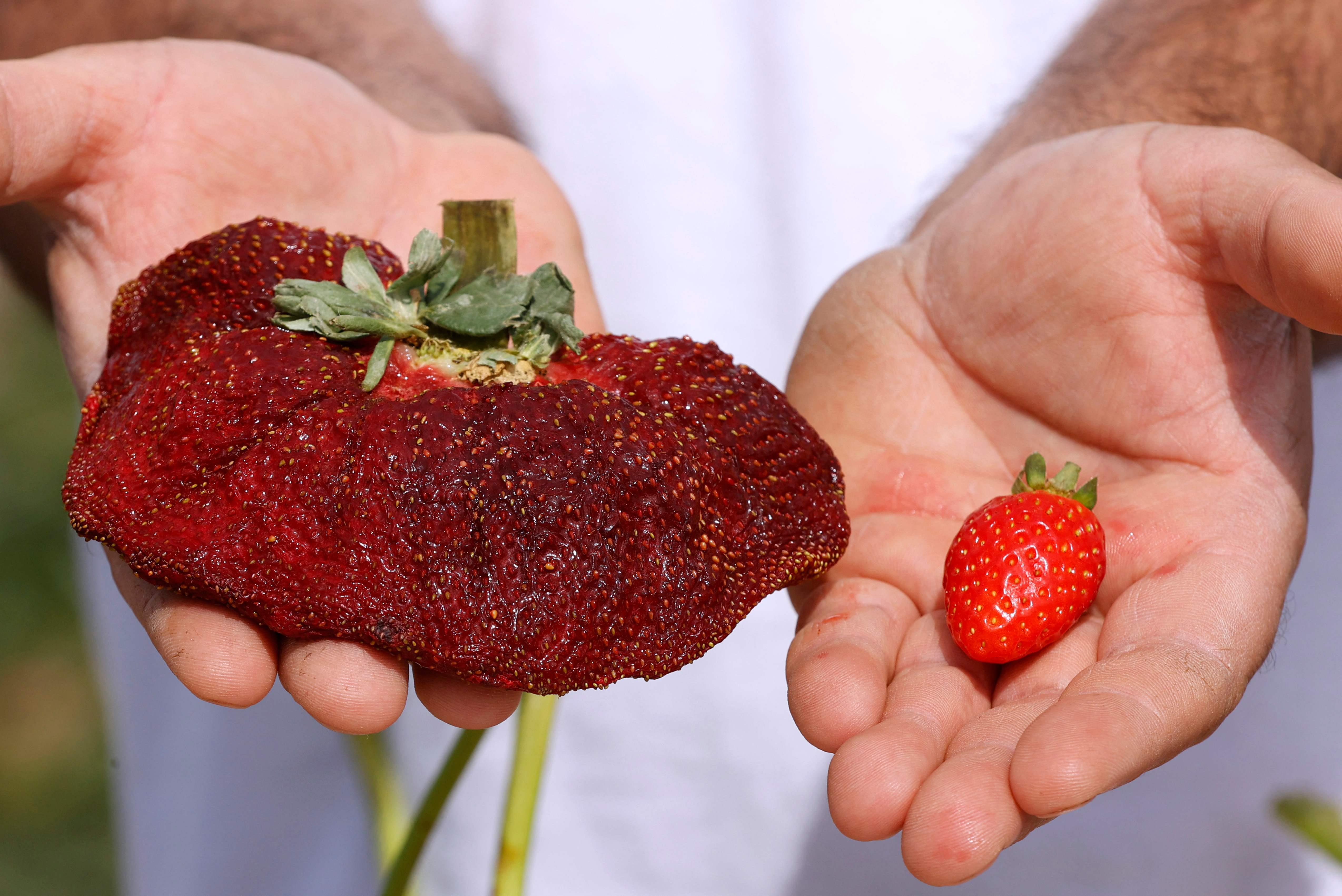 最初培育这个品种的以色列农业研究组织专家尼尔·戴说,去年1月至2月当地气候格外寒冷,使草莓生长期延长,得以结出硕大果实。他说,从开花、结果到成熟,这枚草莓足足长了45天。