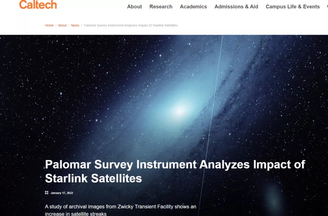 美国加州理工学院官网刊登了星链卫星对天文观测的影响。图片来源:加州理工学院官网截图。