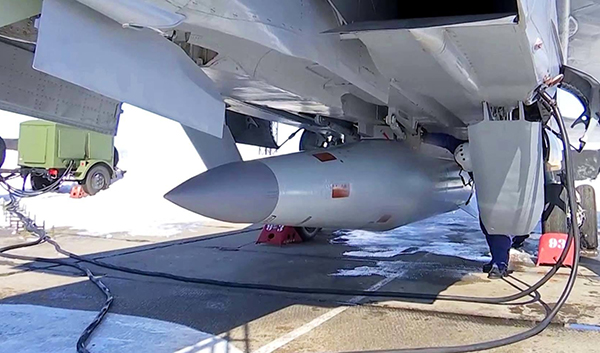 米格-31截击机机腹下可挂载一枚“匕首”导弹。