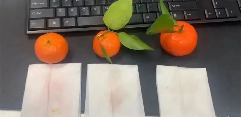 工作人员告诉记者,橘子类水果一般剥开时,手上都会产生轻微染色,如果发现染色较深或者颜色明显异常,不排除是使用了着色物质的情况。