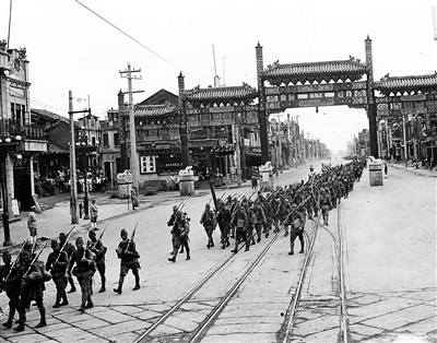 1937年8月13日日军占领北平后入城军队从正阳门穿过大幅老照片(邹德怀收藏)