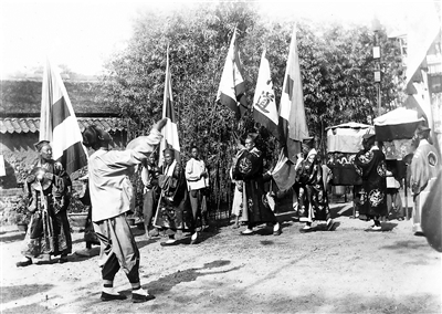 德国殖民时期,崂山道士在青岛大鲍岛做法事(邹德怀收藏)