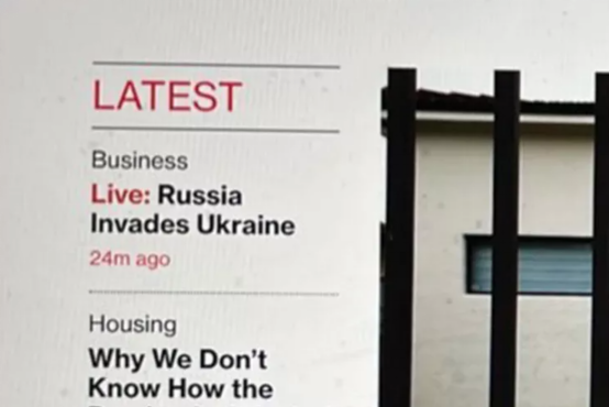《纽约邮报》援引推特网友截图,图中,彭博社官网首页发布了有关“俄罗斯入侵乌克兰”的标题。