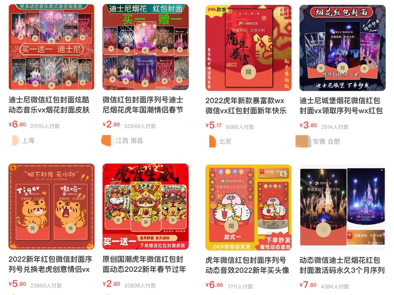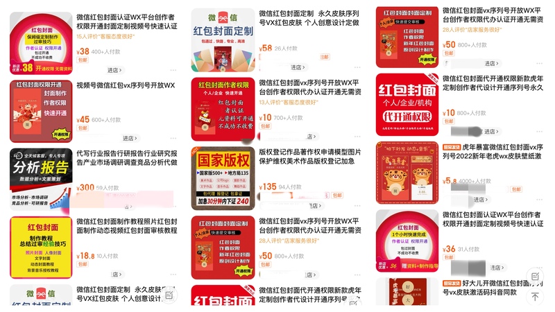 最后,制作完成的红包封面通过线上交易平台等向网友兜售。