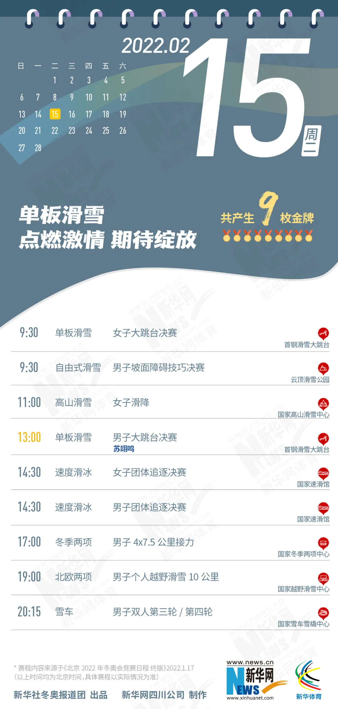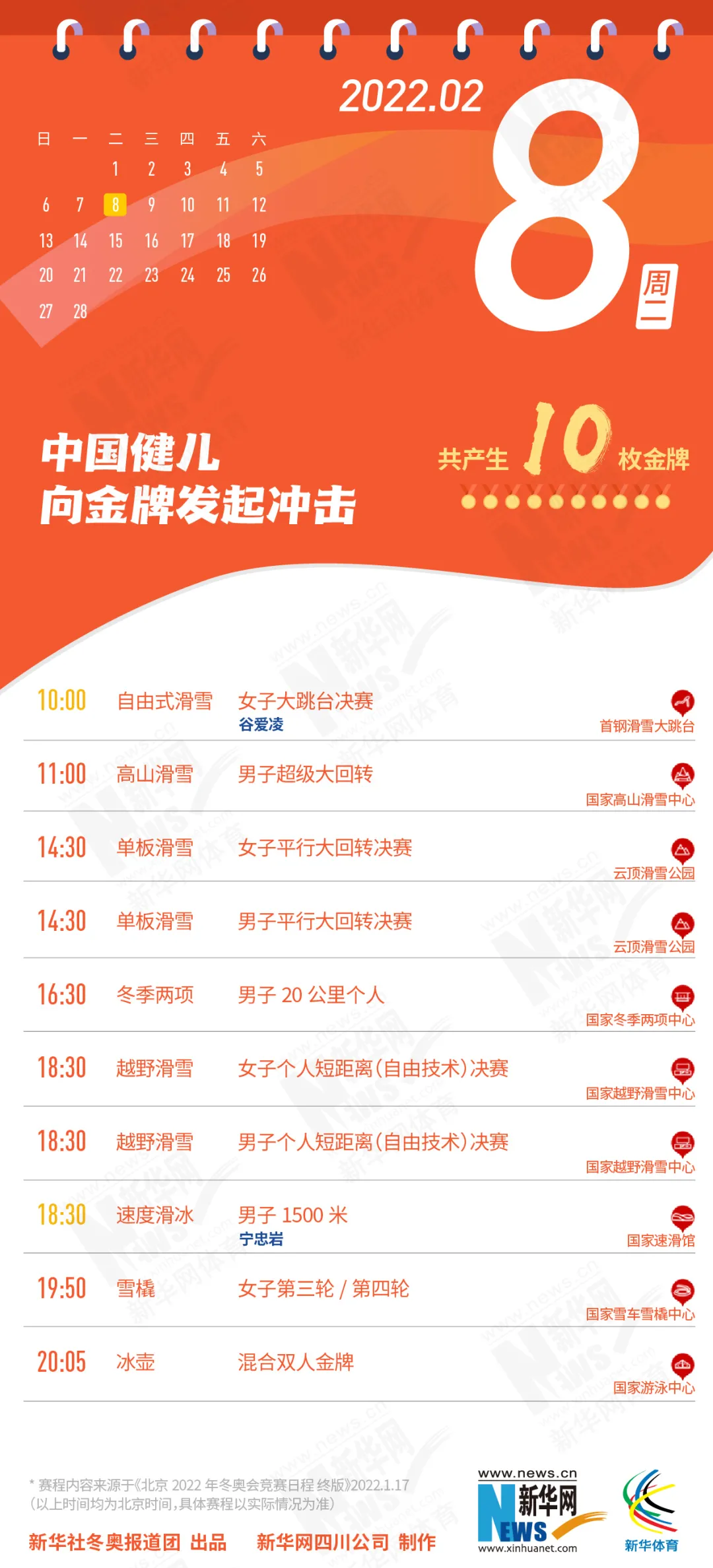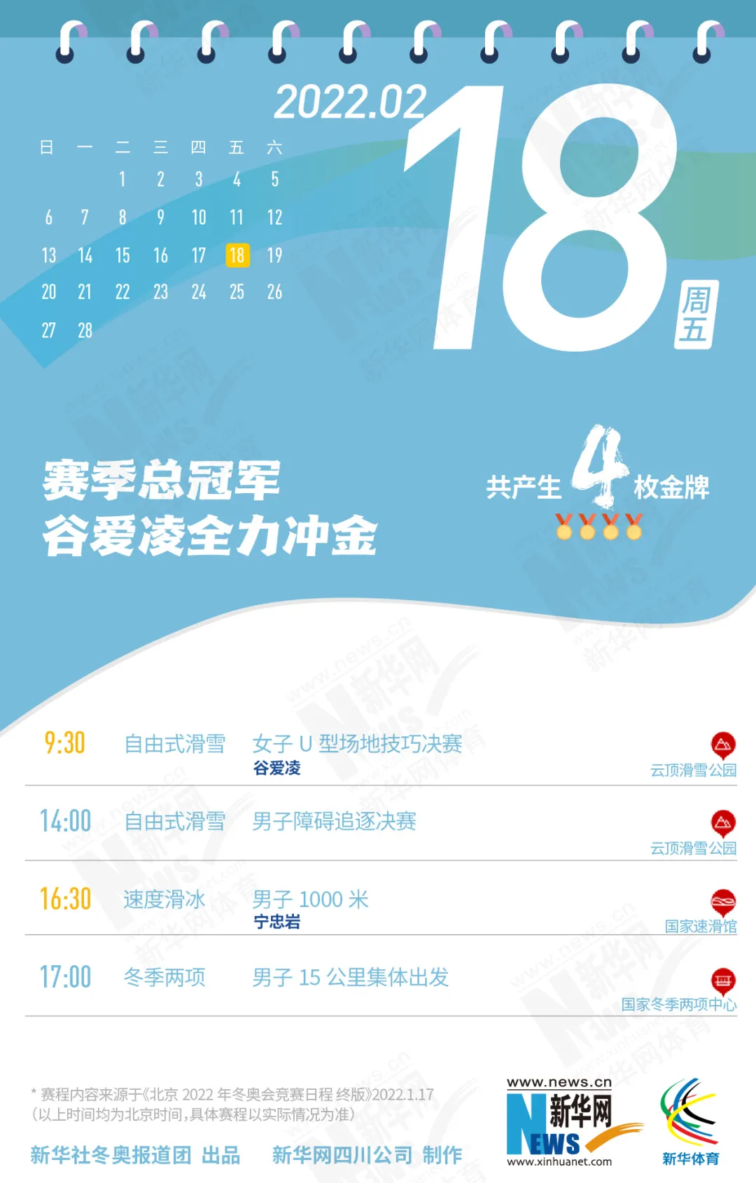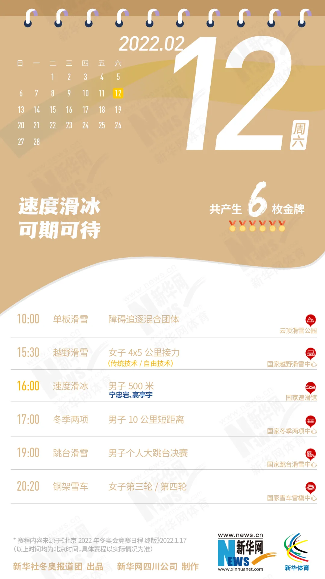 这份北京冬奥会金牌赛事日历