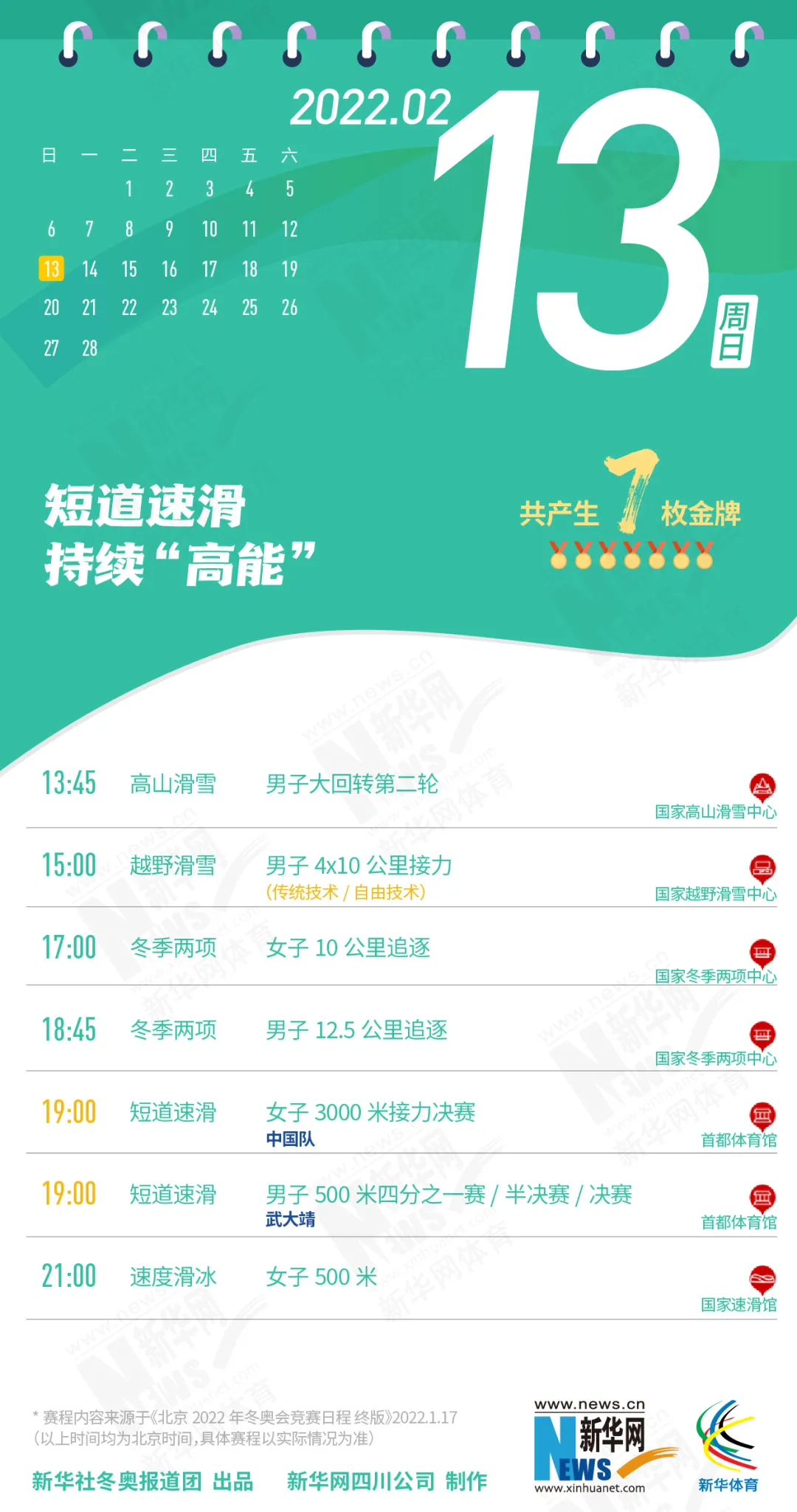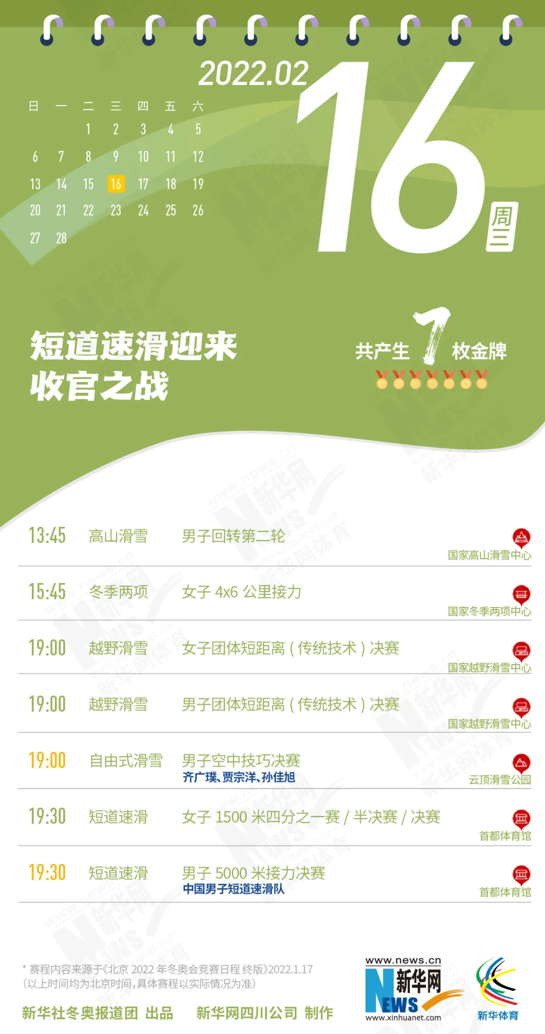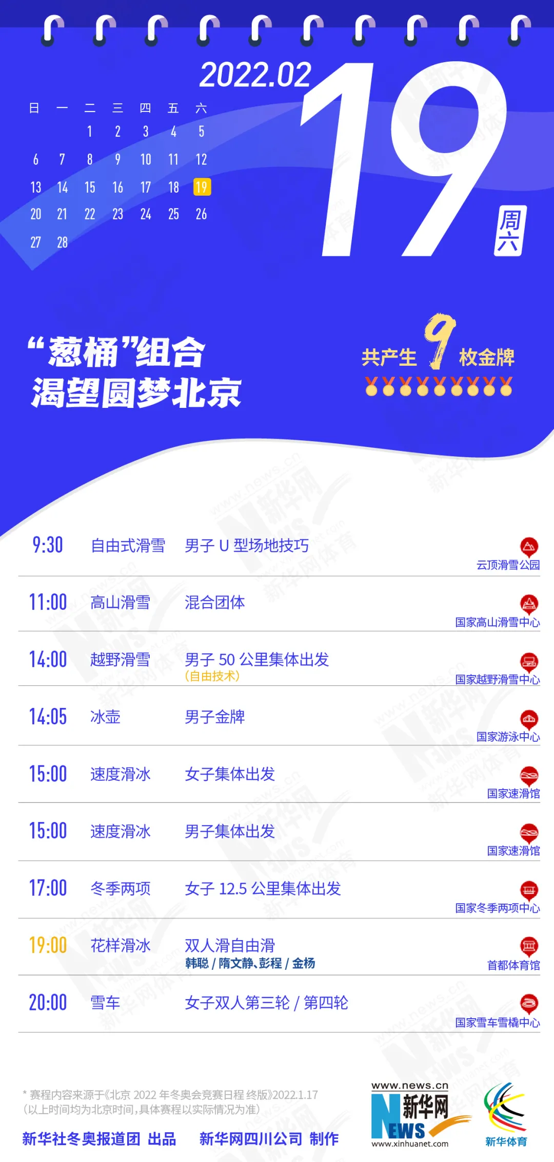这份北京冬奥会金牌赛事日历