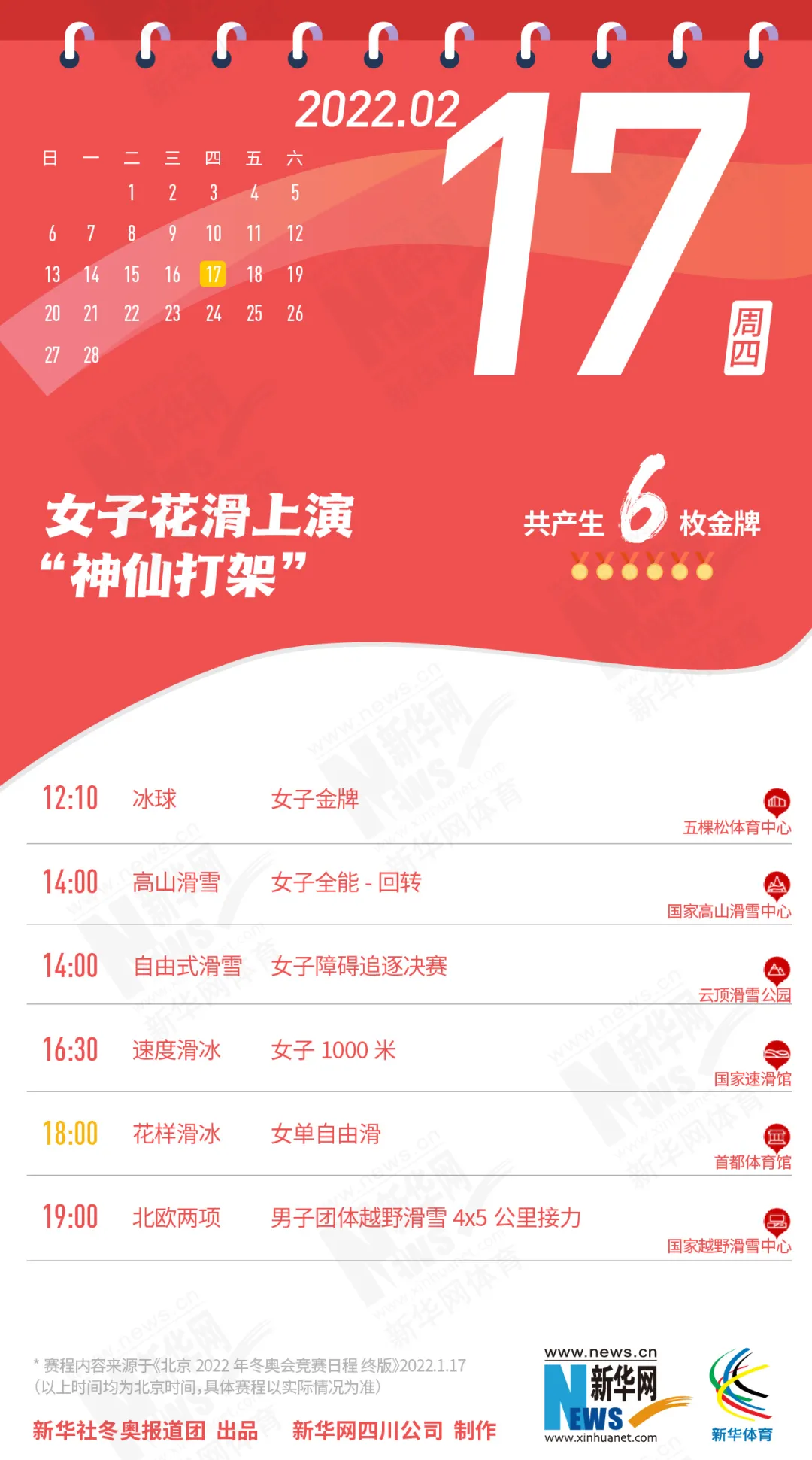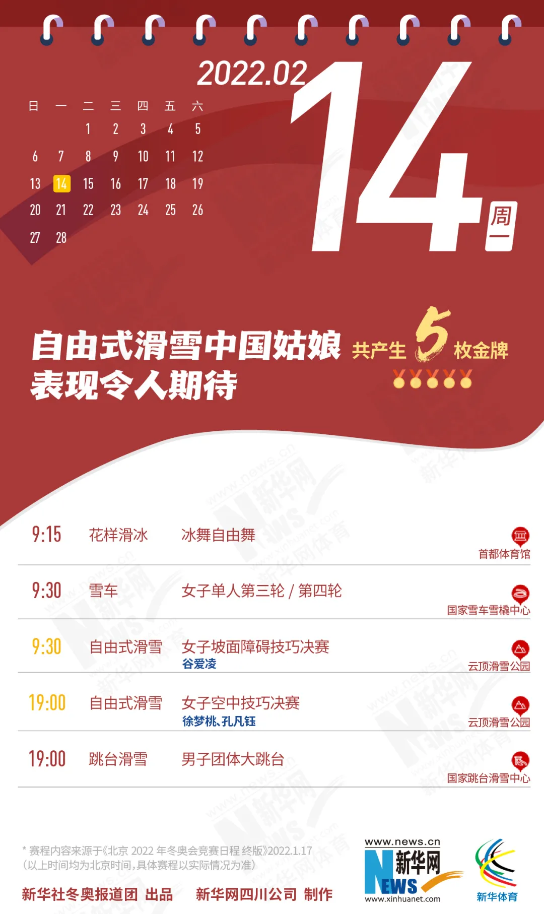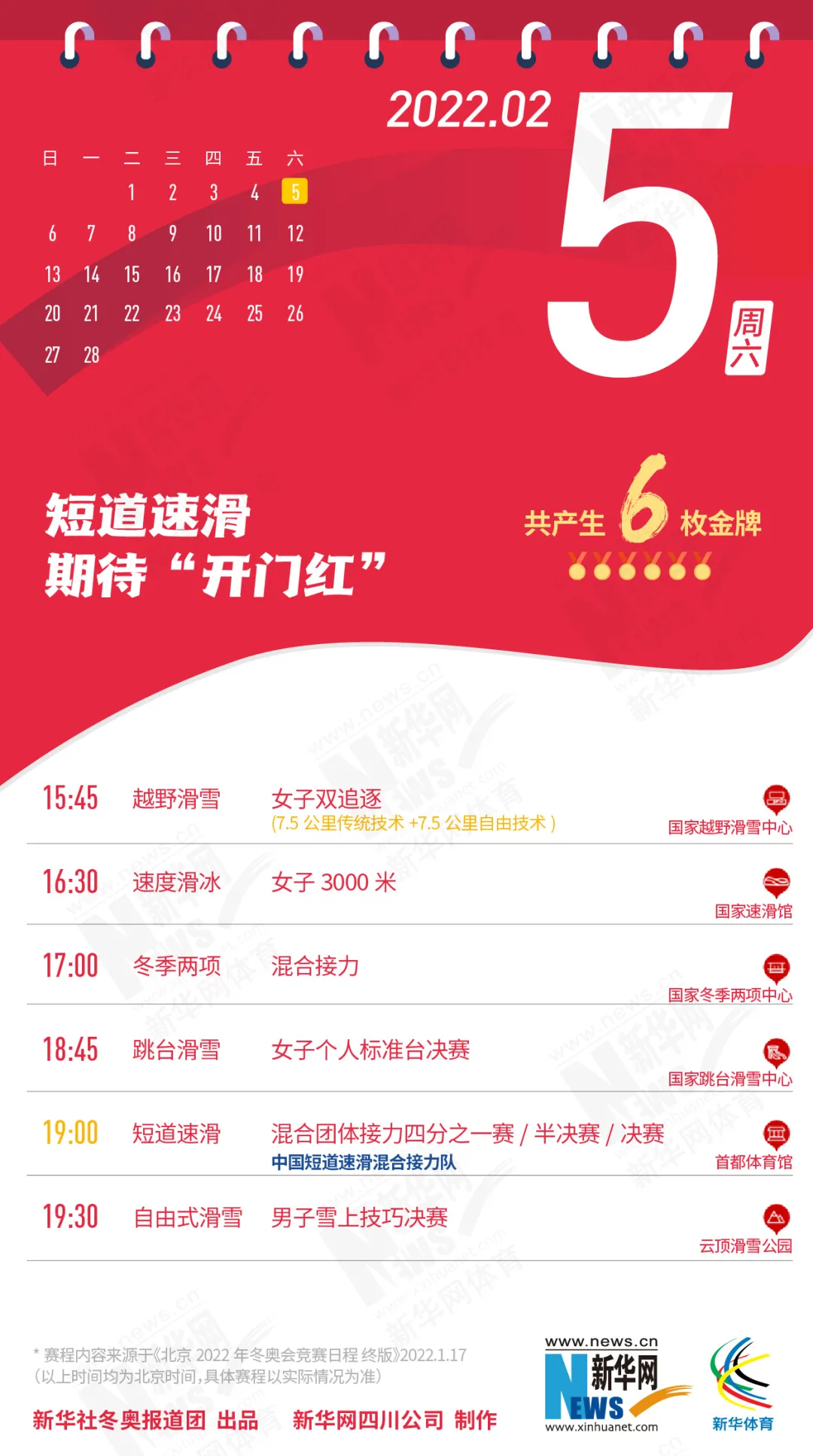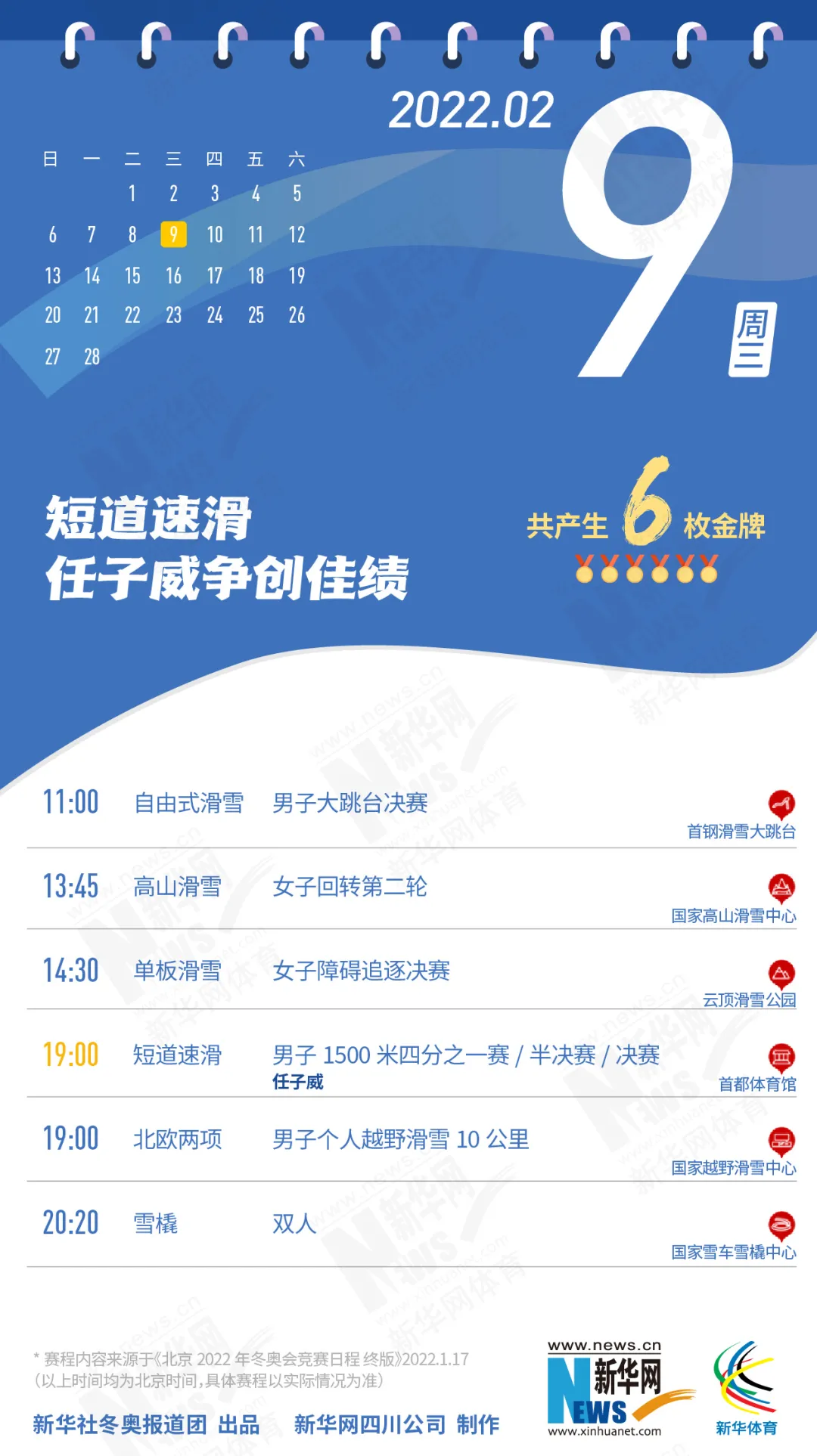 这份北京冬奥会金牌赛事日历
