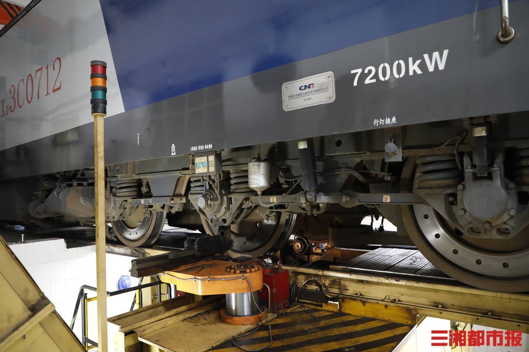 长沙检修车间轴检组工长焦红旭告诉记者,一台列车有六个轮对,平均每镟一个轮对要耗时1.5个小时,碰到“难缠”的故障轮对,作业时间还要增加。两位师傅需坚持连续作业9-10个小时,才能让一台机车顺利交车。