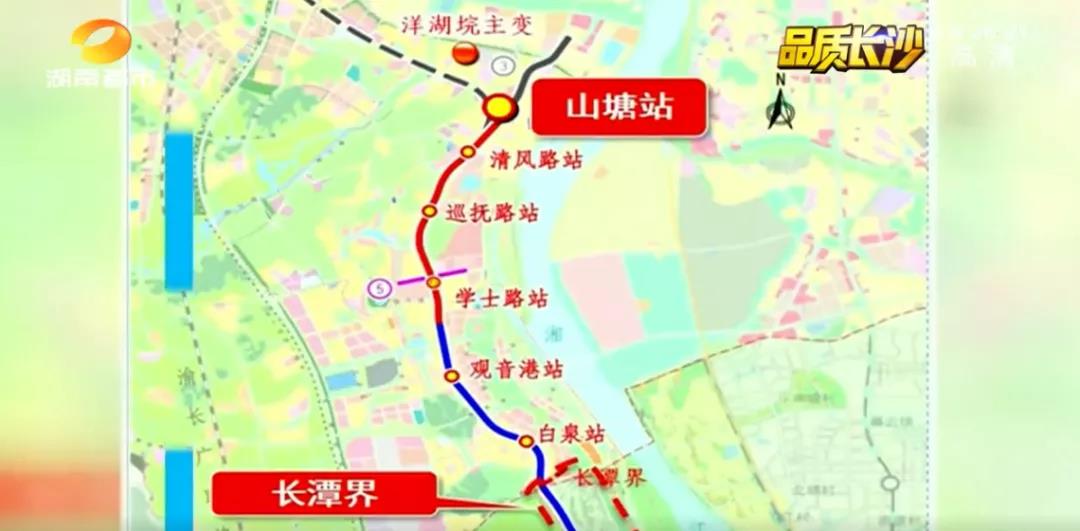 长株潭城轨西环线北起长沙地铁3号线山塘站南至沪昆高铁湘潭北站全场约17.29公里,设置8座车站四座为地下站、四座为地面高架站