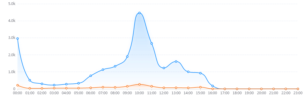 今日省内核心数据总量共有21802条,核心数据峰值产生在上午10点
