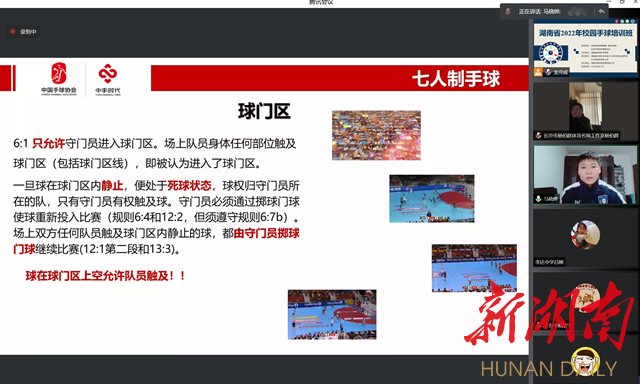 科教新报·新湖南客户端讯(通讯员 庞淑君 孙缘)2月12日,湖南省校园手球线上培训活动开班,全省40多名体育教师参训。这是我省首次具备一定规模的手球培训活动,由中国手球协会、全国学校体育联盟(教学改革)指导,湖南省体育科学学会主办,湖南省中小学体育专业委员会和长沙高新区虹桥小学承办。