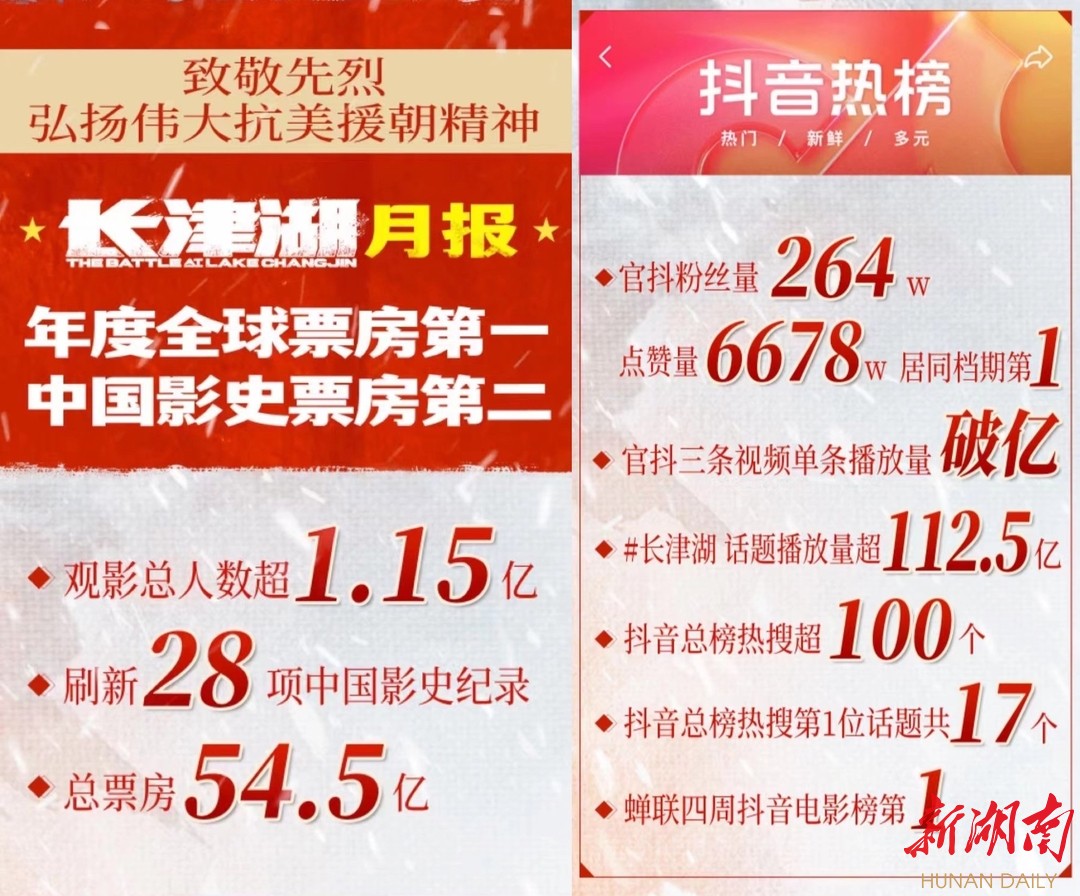 科教新报·新湖南客户端讯(陈洁)2月9日晚,抖音官方微博发布声明,称媒体报道的“抖音上有电影《长津湖》长达30分钟的切条”为不实信息。抖音方面表示,“相关内容实际是《长津湖》制片方博纳影业与抖音官方宣传合作的一部分,相关视频总长度不到6分钟,素材来自电影宣传片及相关历史资料”,不存在侵犯版权的情况。