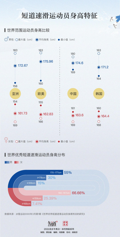 同时,一些西方学者曾研究速滑运动员的身体特点,他们发现,专业运动员的身高体重与普通人无异,但同身高相比,他们的腿更短,躯干更长,以上这些身高特征可以说是亚洲人更加符合。