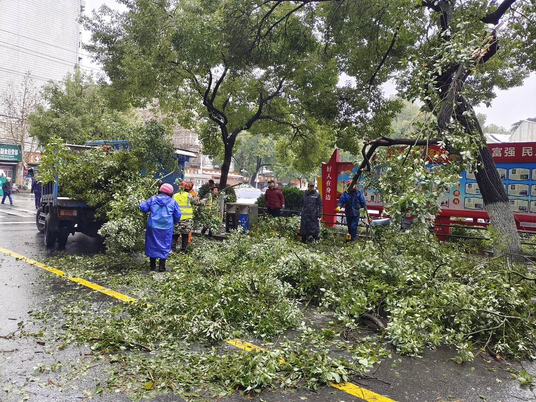 △2月23日凌晨,石鼓区园林所与五一街道协力清除路面树木