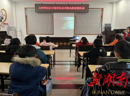 新湖南客户端2月9日讯(通讯员 孔靖)2月8日下午,长沙市芙蓉区东屯渡街道白沙湾社区新时代文明实践站开展以“无毒青春,健康生活”为主题的禁毒微电影展播活动。