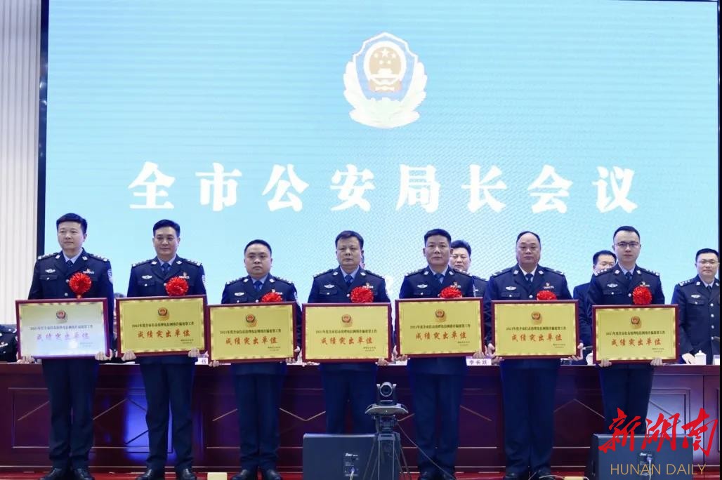 会上对2021年度县级公安机关绩效评估优秀单位,新时代县域警务、禁毒执法、打击治理电信网络诈骗犯罪、交通问题顽瘴痼疾集中整治(减量控大)等重点工作成绩突出单位予以表彰。