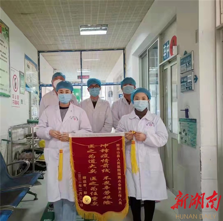 新湖南客户端2月21日讯(通讯员 李钊)一位彭姓女士因健康码红码,于湘西土家族苗族自治州龙山县人民医院隔离点接受了14天医学隔离,在2月20日解除隔离。当天,让隔离点工作人员没想到的是,彭女士竟然为隔离点送来了锦旗,锦旗上写着“冲锋疫情前线,不畏辛劳艰险,医之为道大矣,医之为任重矣”。