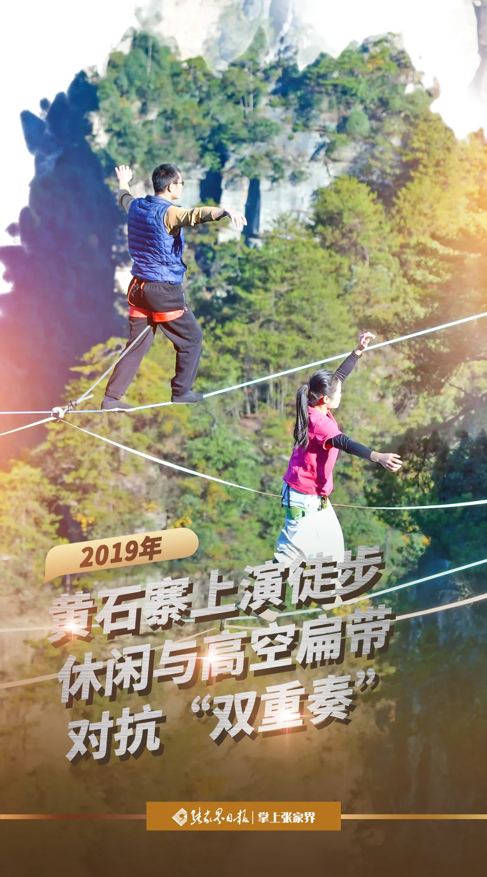 2019年10月20日,湖南武陵源徒步大会暨张家界黄石寨高空扁带对抗赛在武陵源举行,800余名徒步运动爱好者、中外扁带大师齐聚奇峰秀水间,上演徒步休闲与高空扁带对抗“双重奏”。