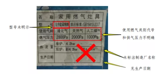1、销售无CCC认证、无自动熄火保护装置、产品铭牌信息不符合 GB 16410-2020《家用燃气灶具》国家标准要求等燃气具的。