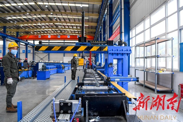 ▲1月22日,沅陵产业开发区湖南中建奇配科技有限公司内,工人们正在抓紧生产生产。该公司一期利用原中金盛唐厂房2万余平方米新建成品支架、装配式机房生产线4条,计划投资2.15亿元。项目建设同时盘活了闲置资源,引进了优质项目,“腾笼引凤凰”,激发了新活力。杨智伟 摄
