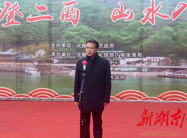 沅陵县委副书记、县人民政府县长易中华宣布沅陵县“新年登二酉、山水入画来”登高朝圣活动正式开始。