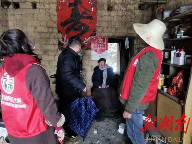 黄泥塘街道碧溪社区组织人员查勘危房,提醒老人注意防寒保暖及取暖用火、用电、用气安全。