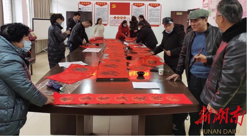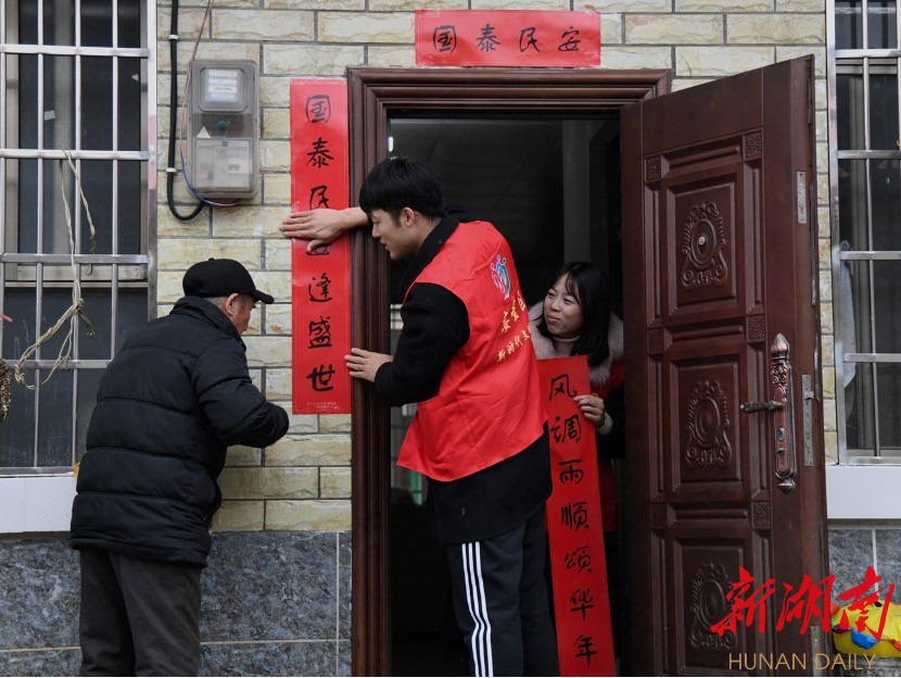 湖南日报·新湖南客户端2月2日讯(记者 李梅花)写春联、贴春联是过春节迎新年的民俗之一。每当新春来临之际,娄底大街小巷、村庄社区的人们都喜欢自己写或请人写春联,门口写“玉虎辞年财到户,金虎送福喜临门”等寓意大吉大利的对联,车辆上贴“出入平安”,大门外贴“开门见喜”,牲口圈门口贴“六畜兴旺”……红红的春联里,蕴含着浓浓的年味,也寄托着人们对新年新生活的美好期盼和祝愿。