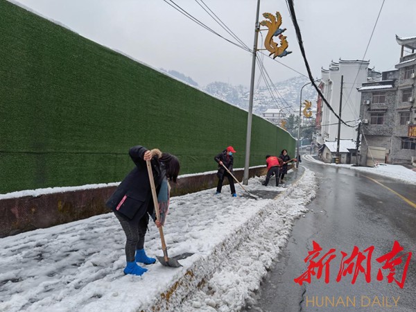 新湖南客户端2月1日讯(通讯员 胡真全)1月30日晚,湘西土家族苗族自治州凤凰迎来了一场大雪。一夜之间大雪覆盖了大地,导致县城内所有路段出现不同程度积雪结冰,为避免积雪结冰给市民的出行带来安全隐患,确保市民安全便利出行。1月31日,凤凰县委统战部组织统战系统干部到凤凰南华门、风雨桥、栗湾停车场、豹子湾等路段人行道和路面开展除冰除雪保路畅行动。