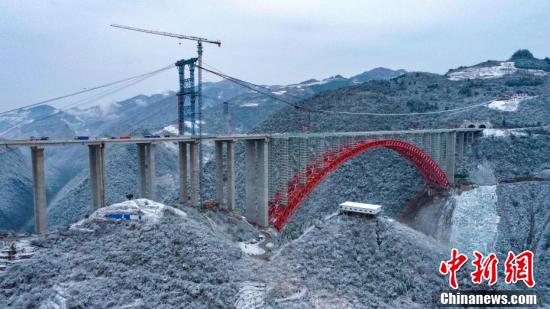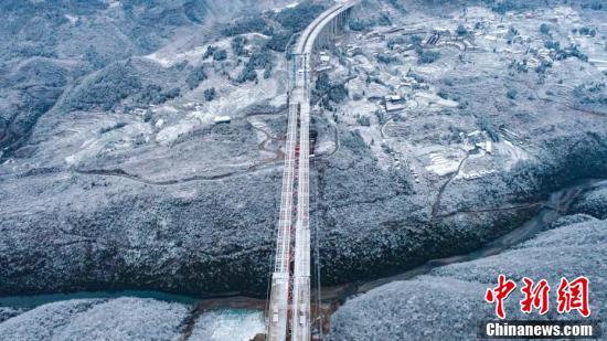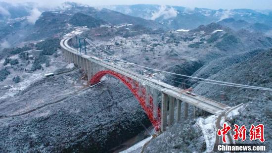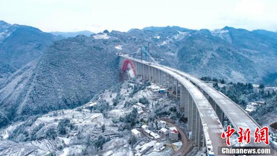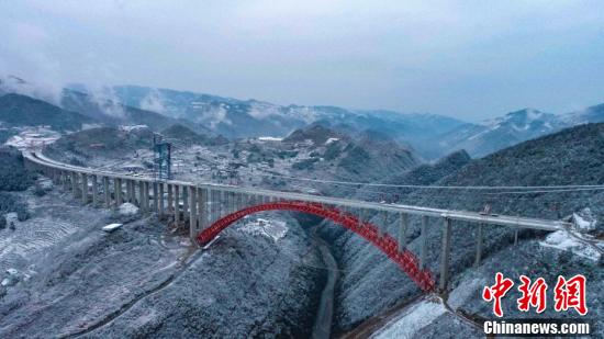 2月21日,贵州多地出现降雪天气,位于贵州省遵义市播州区境内的仁怀至遵义高速公路大发渠特大桥雪后景色宛如水墨画。
