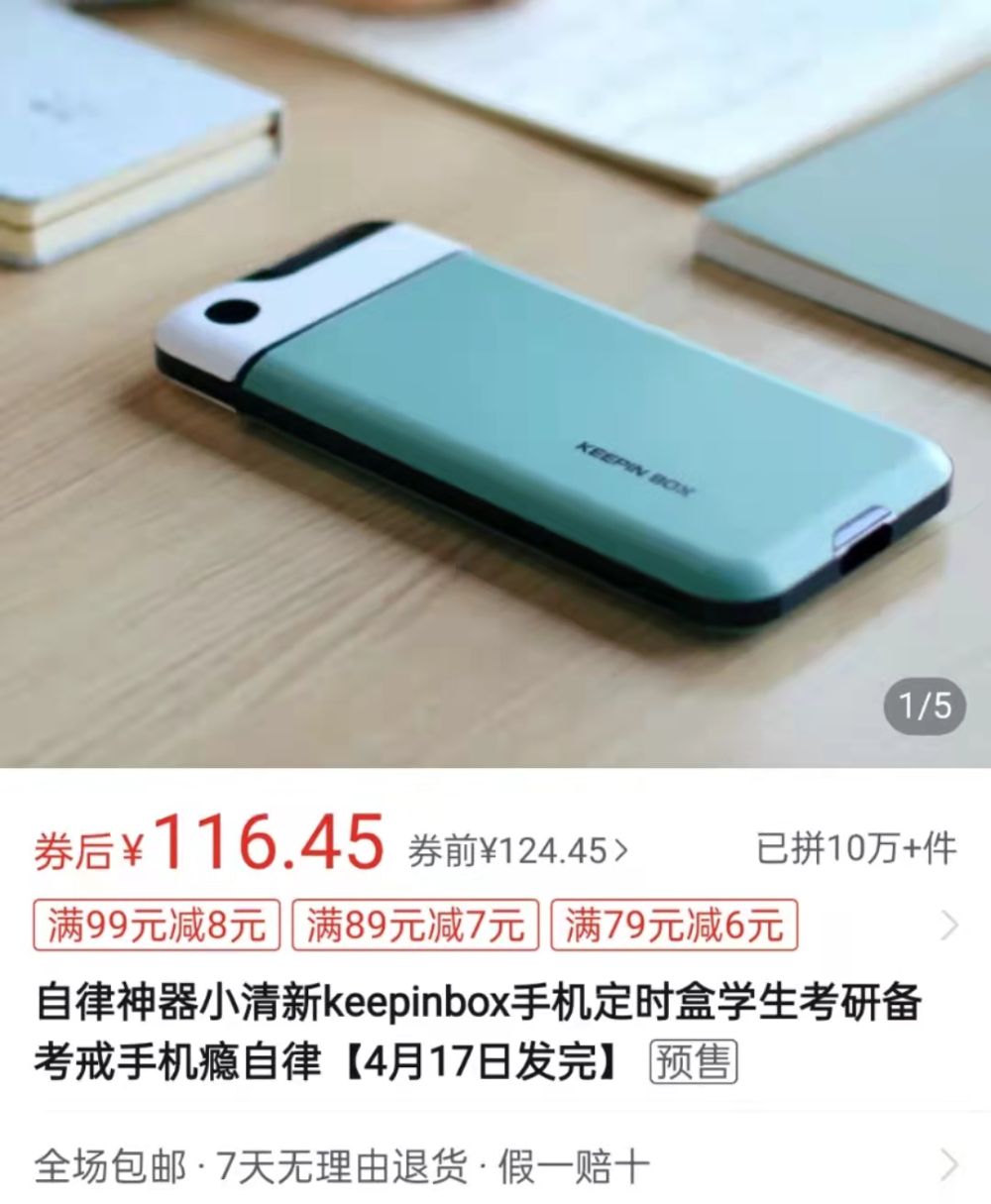 电商平台上售卖的“手机定时盒子”产品宣传网页截图。