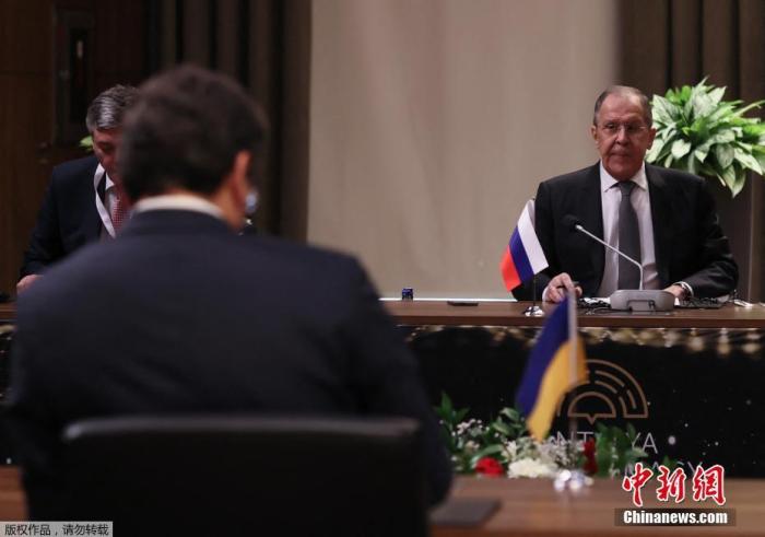↑当地时间3月10日,俄罗斯外长拉夫罗夫与乌克兰外长库列巴在土耳其安塔利亚举行会谈。