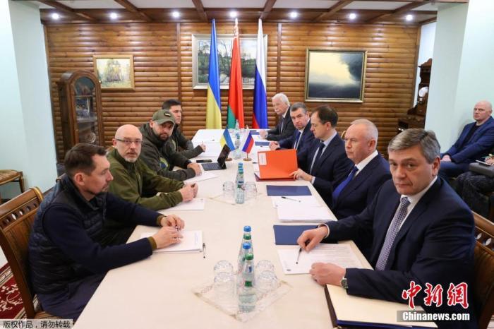 ↑资料图:当地时间3月7日,俄乌代表团在白俄罗斯境内别洛韦日森林举行第三轮谈判。