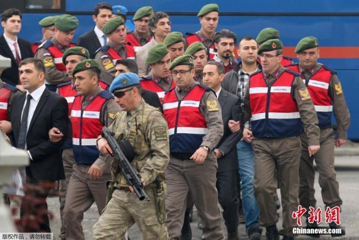 ↑资料图:2017年,土耳其未遂军事政变中部分人员因涉嫌密谋“刺杀”总统埃尔多安,出庭受审。