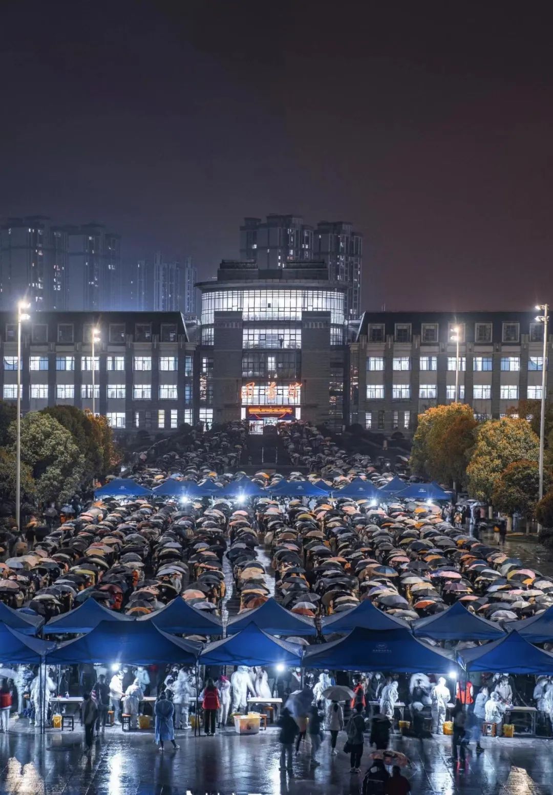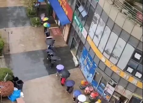 业主冒雨排队伞下的风景也是一种自觉