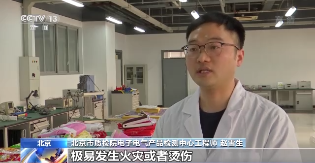 北京市质检院电子电气产品检测中心工程师 赵雪生:导致不合格的主要原因是电热毯没有温度限制措施,或温度限制装置选型与产品不匹配,极易发生火灾或者烫伤,或者触电事故。