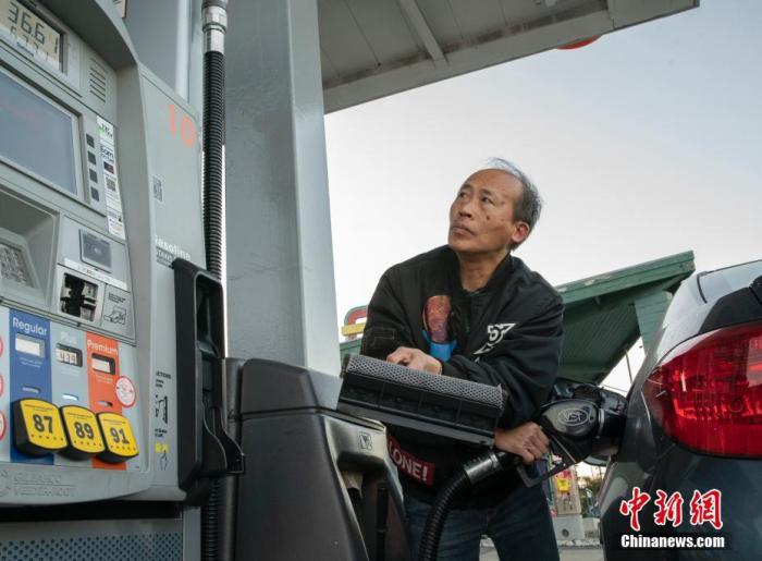 资料图:当地时间3月6日,一位车主在美国加州圣马特奥县为车辆加油。美国汽车协会的全国平均汽油价格监测报告显示,美国普通汽油的平均价格当日达到每加仑4.009美元,创下2008年夏季以来的最高汽油均价纪录。中新社记者 刘关关 摄