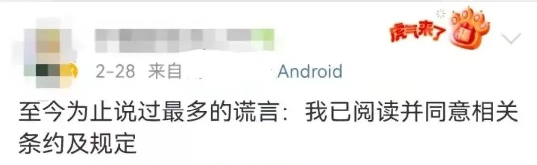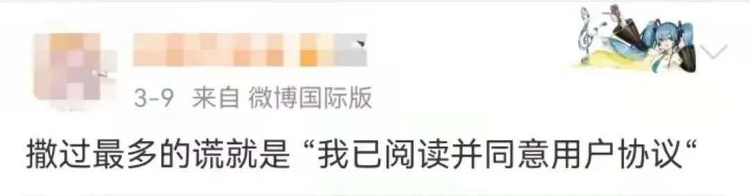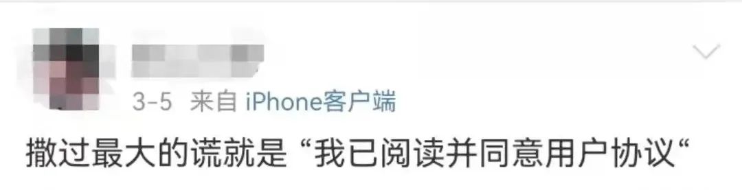 这也怪不了用户看到隐私协议就指尖匆匆划过屏幕只能“同意”,不少网友调侃,“我撒过最多的谎,就是‘已阅读并同意用户协议’”。