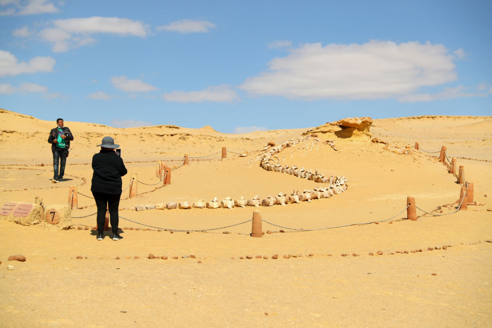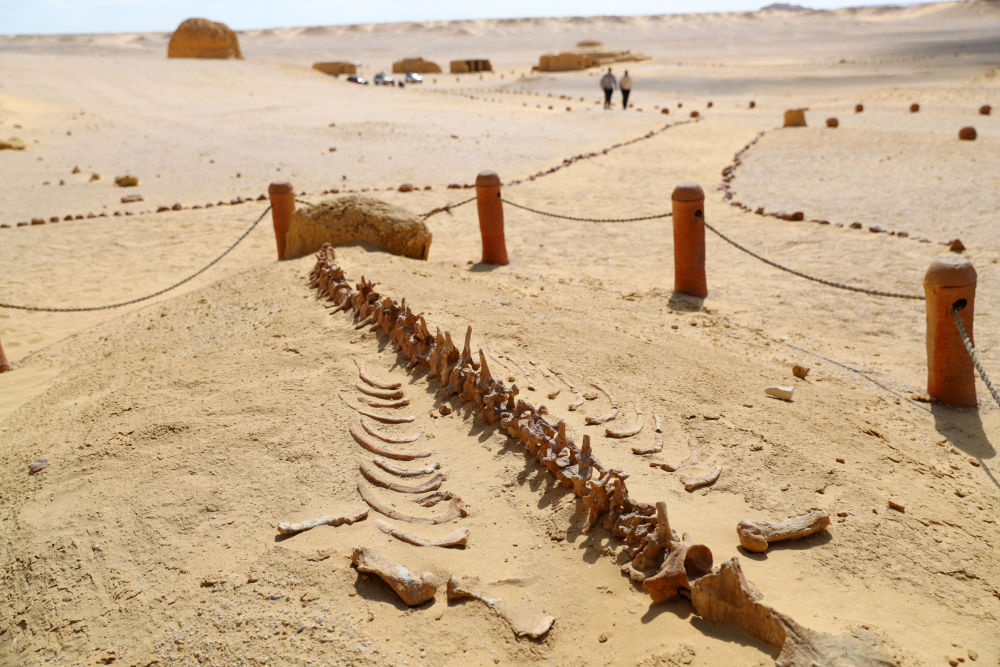 “鲸鱼谷”位于埃及法尤姆省的沙漠深处,是古鲸类化石的重要发现地和展出地。这里4000万年前是一片汪洋,如今已成沙漠,古鲸化石散落其间,风蚀砂岩零星点缀。它于2005年被列入世界自然遗产名录,成为埃及第一处世界自然遗产。