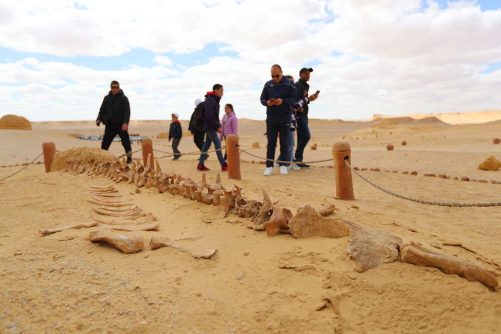 ↑3月11日,游客在位于埃及法尤姆省的“鲸鱼谷”参观。
