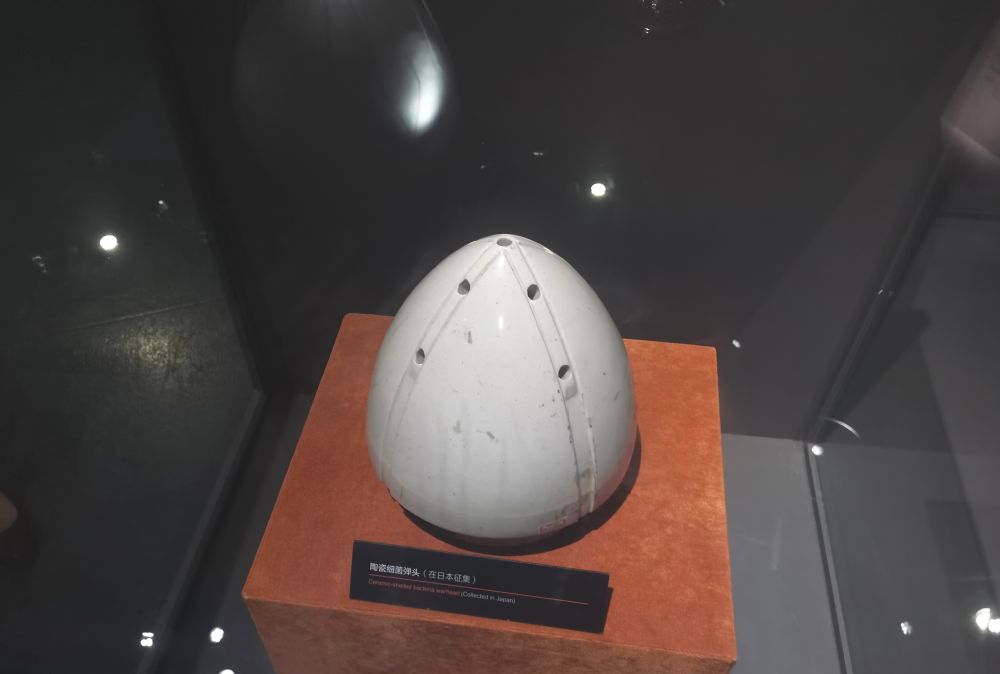 侵华日军第七三一部队罪证陈列馆内展陈的731部队生产的陶瓷细菌弹头。新华社 记者王建 摄