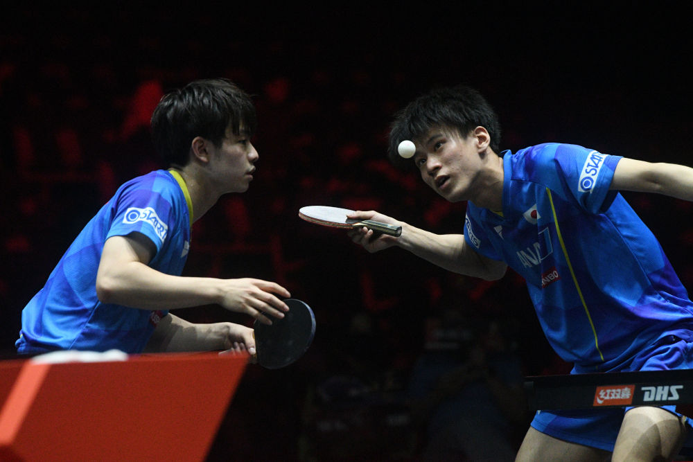 ↑日本组合宇田幸矢(左)/户上隼辅在比赛中。