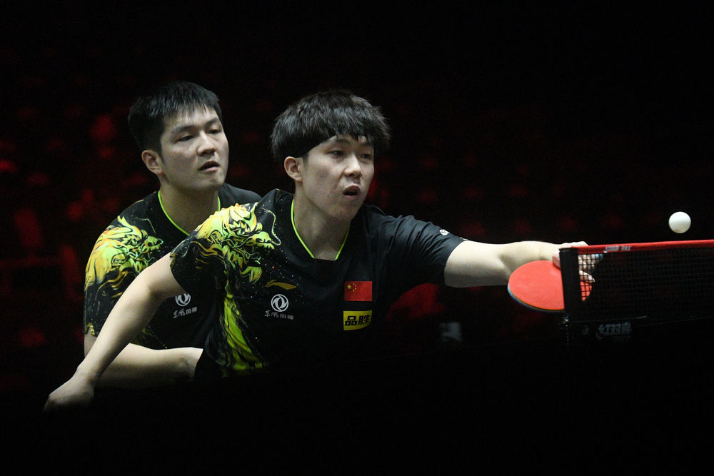 ↑中国组合樊振东(左)/王楚钦在比赛中。
