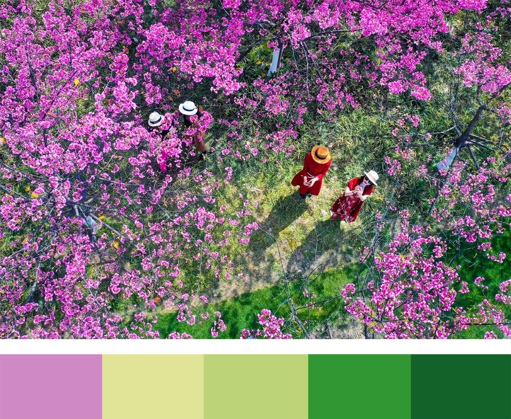 大自然是搭配色彩的能工巧匠,它信手拈来,编织出一幅幅五彩斑斓的图画:嫩绿的新芽、金黄的油菜花、粉红的樱花……在繁花盛放的季节里,请跟随我们,在云端欣赏大江南北的缤纷秀丽,将美丽的春日色卡尽收囊中!
